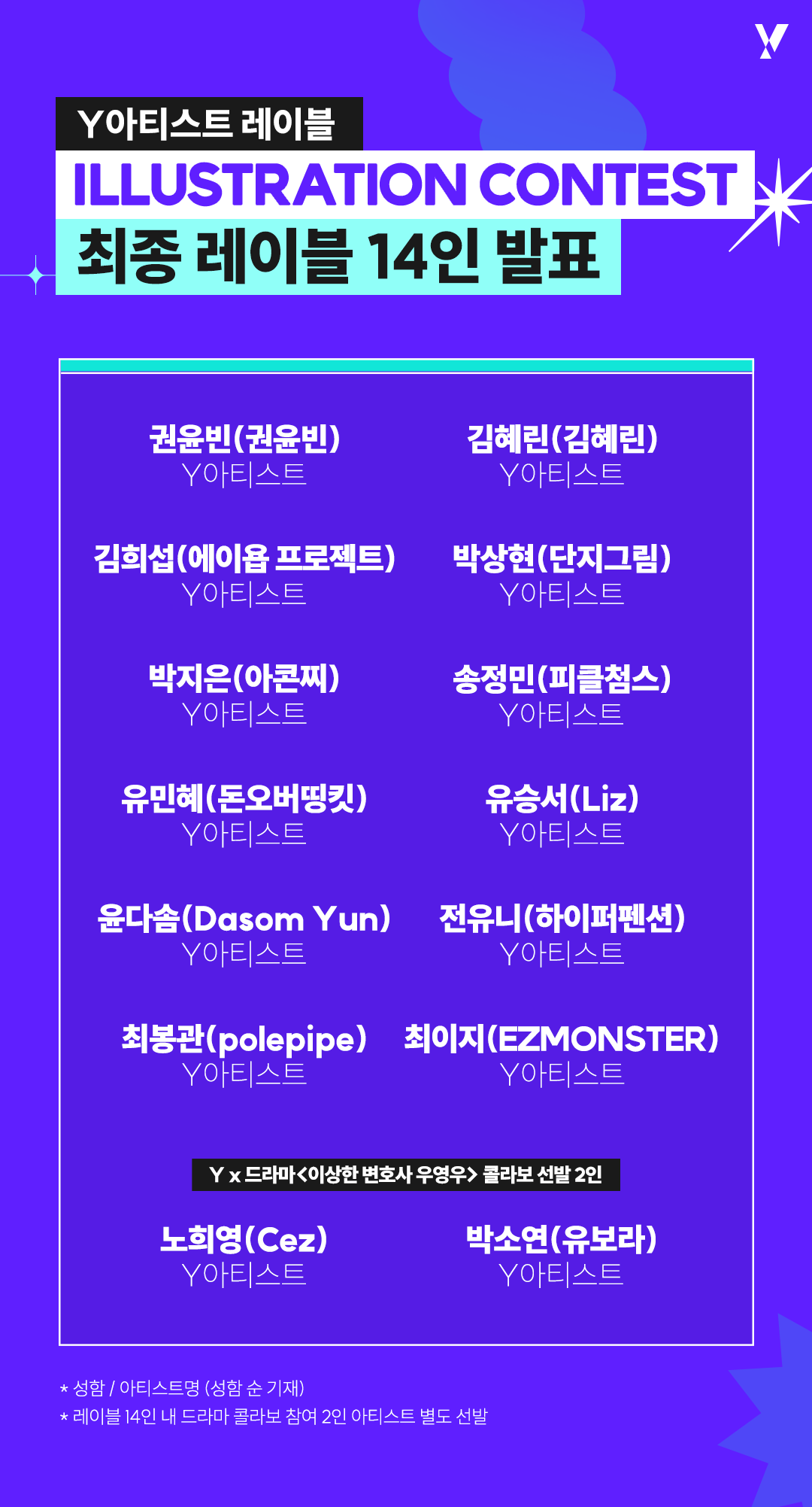 Y아티스트 레이블 최종 14인을 아래와 같이 발표합니다.