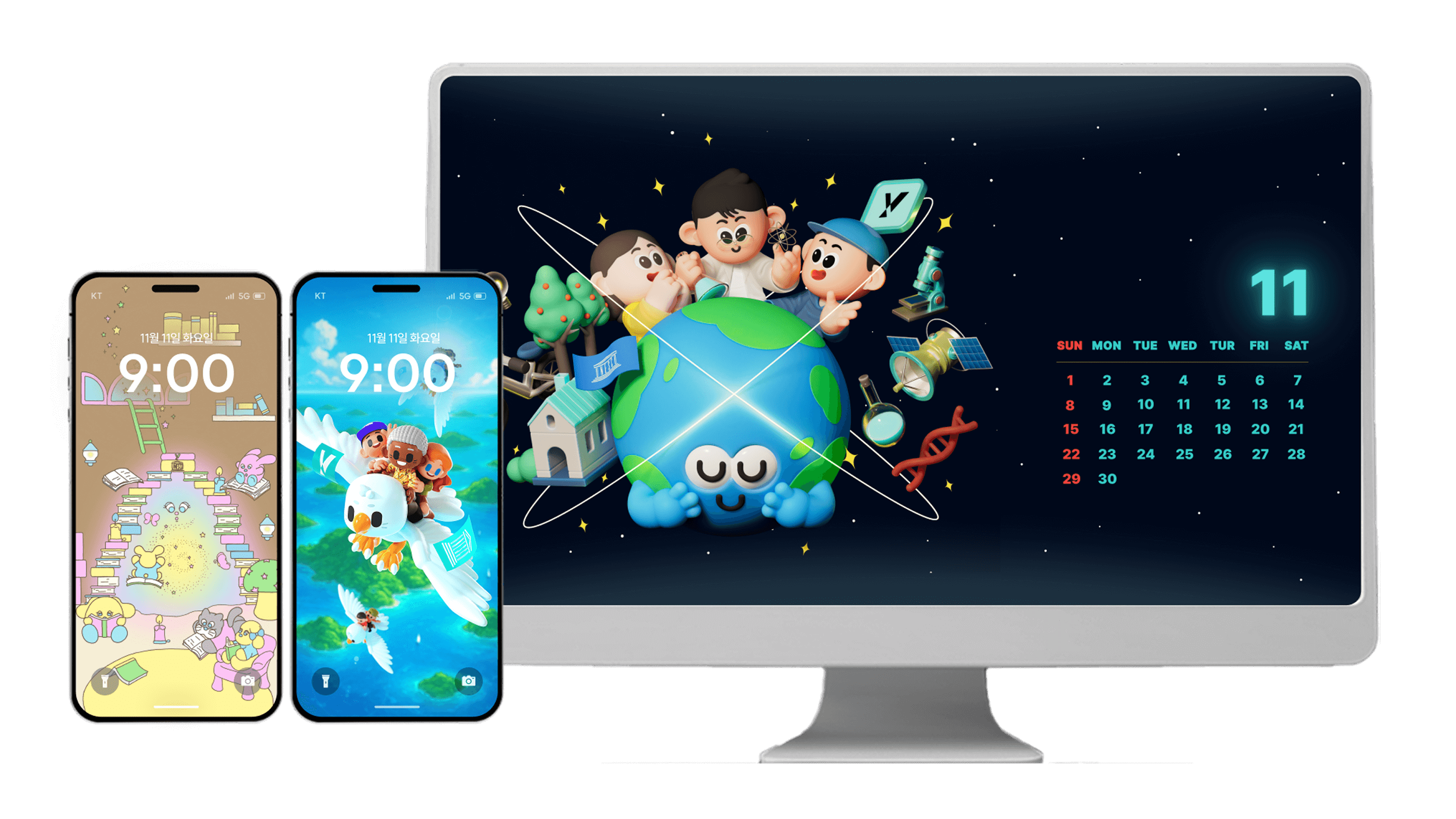 스마트폰/태블릿/PC 배경화면, 스티커, 다이어리로 만나보세요!